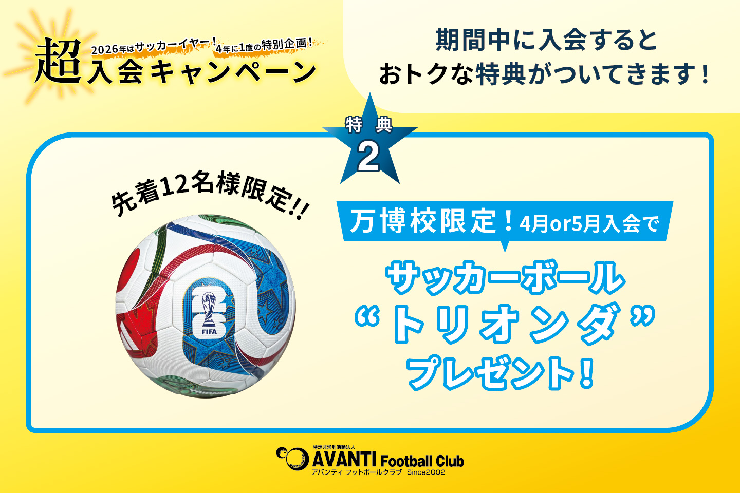 アバンティでサッカーをはじめるなら、4年に1度の特別キャンペーンを実施するこの春がチャンス!